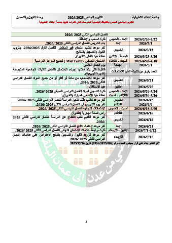 ﺑﺪء ﺍﻟﺘﺪﺭﻳﺲ ﻟﻠﻔﺼﻞ ﺍﻟﺪﺭﺍﺳﻲ ﺍﻟﺜﺎﻧﻲ .2026/ 2025 ﺍﻻﺣﺪ 2026/3/1