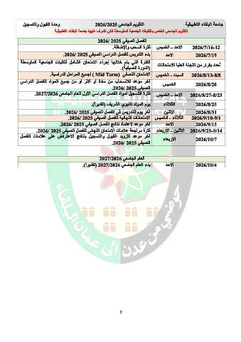 ﺑﺪء ﺍﻟﻌﺎﻡ ﺍﻟﺠﺎﻣﻌﻲ ) 2027/2026ﺗﻘﺪﻳﺮﺍً(.