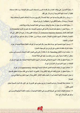 .16استخدام أجهزة أو شبكات الجامعة لتعدين العملات الرقمية ( )Cryptocurrency Miningاو غيرها.