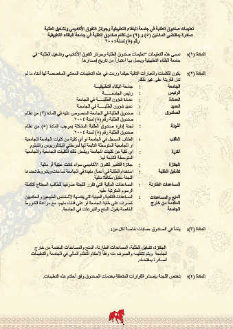 تعليمات صندوق الطلبة في جامعة البلقاء التطبيقية وجوائز التفوق الأكاديمي وتشغيل الطلبة