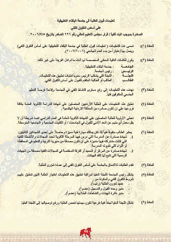 تعليمات قبول الطلبة في جامعة البلقاء التطبيقية