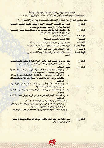 يشكل في مركز الجامعة اتحاد رياضي باسم “الاتحاد الرياضي للكليات الجامعية المادة (:)3