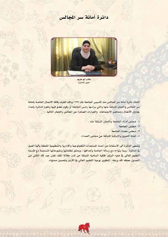 سر المجالس واللجان المنبثقة عنها والتي يرأسها رئيس الجامعة أو يكون عضو فيها وتقوم الدائرة بإعداد