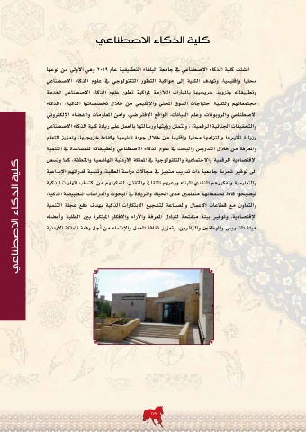 والتحقيقات الجنائية الرقمية» ،وتتمثل رؤيتها ورسالتها بالعمل على ريادة كلية الذكاء الاصطناعي
