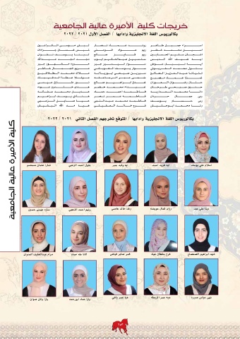 كلية الأميرة عالية الجامعية بكالوريوس اللغة الانجليزية وادابها /المتوقع تخرجهم الفصل الثاني ٢٠٢٢ / ٢٠٢١