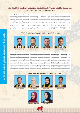 كلية عمان الجامعية للعلوم المالية والإدارية دبلوم ادارة الاعمال /المتوقع تخرجهم الفصل الثاني 2022 / 2021