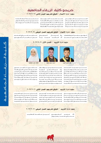 كـــلـــيـــة الـــــــزرقـــــــاء الـــجـــامـــعـــيـــة دبلوم ادارة الاعمال /المتوقع تخرجهم الفصل الصيفي 2022/2021