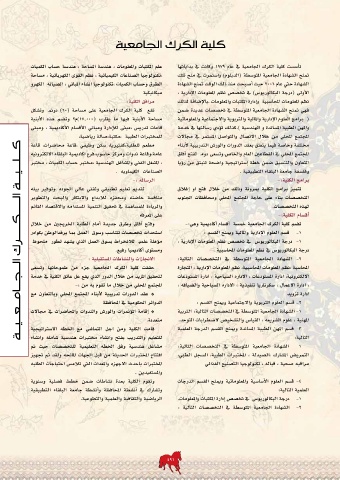 كــــلــــيــــة الــــــكــــــرك الـــجـــامـــعـــيـــة علم المكتبات والمعلومات ،هندسة المساحة ،هندسة حساب الكميات تأسست كلية الكرك الجامعية في عام 1979وكانت في بداياتها