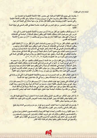 علامات الطالب في تلك السنة ،وتطبق عليه شروط الانتقال من سنة دراسية في الكلية إلى السنة التي