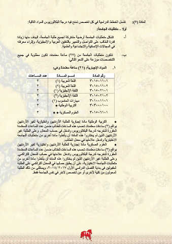 المادة ( :)7تشمل الخطط الدراسية في كل تخصص تمنح فيه درجة البكالوريوس المواد التالية: