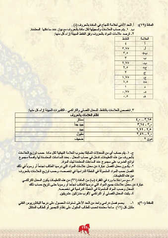 ب .1 .يتم حساب العلامات وتسجيلها لكل مادة بالحروف مع بيان عدد ساعاتها المعتمدة.