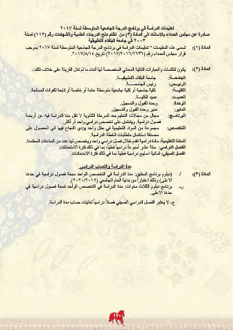 تعليمات الدراسة في برنامج الدرجة الجامعية المتوسطة لسنة 2017