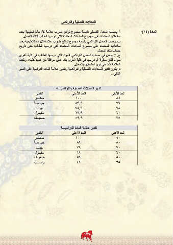 ثد .يكون تقدير المعدلات الفصلية والتراكمية وتقدير علامة المادة الدراسية على النحو