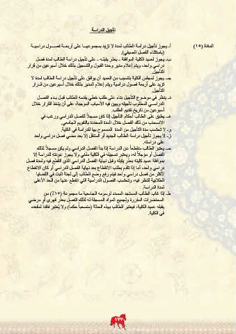 ب -يجوز لعميد الكلية الموافقة -بعذر يقبلـه -على تأجيل دراسة الطالب لمدة فصل