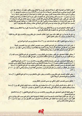 الدبلوم المتوسط مع مسمى تخصص البكالوريوس ،ويقوم القسم المعني بتحديد مواد البرنامج التأهيلي ( )15ساعة