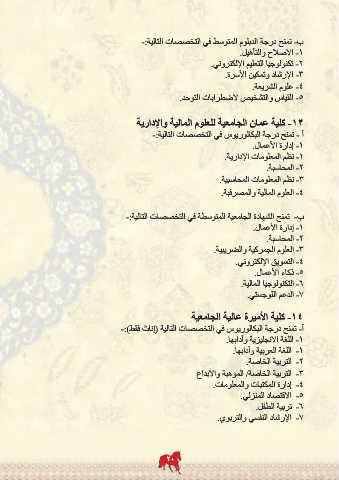 ب -تمنح درجة الدبلوم المتوسط في التخصصات التالية-: