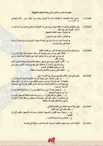 تعليمــات الدراســة الحــرة في جامعة البلقاء التطبيقية