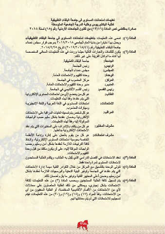 تعليمات امتحانات المستوى في جامعة البلقاء التطبيقية