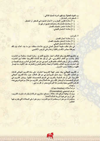 د -التدريب الميداني :يعقد عضو الهيئة التدريسية المشرف على مادة التدريب الميداني لقاءات