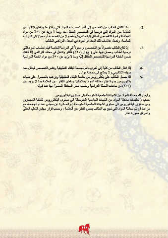 ( )%50من ساعات الخطة الدراسية وحسب اسس المعادلة المعمول بها عند قبوله .