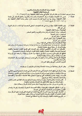 المادة : 1تسمى هذه التعليمات (تعليمات مركز الاستشارات والدراسات والتدريب والتعليم المستمر في جامعة