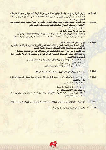 يمارس المركـز مـهـامـه وأعمالـه وفـق خـطـة سنوية مرنة يقرها المجلـس فـي ضـوء الاحتياجات المـادة :5