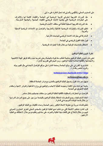 •تنظيم الدورات والبطولات الرياضية الداخلية والخارجية والتواصل مع الاتحادات الرياضية المحلية