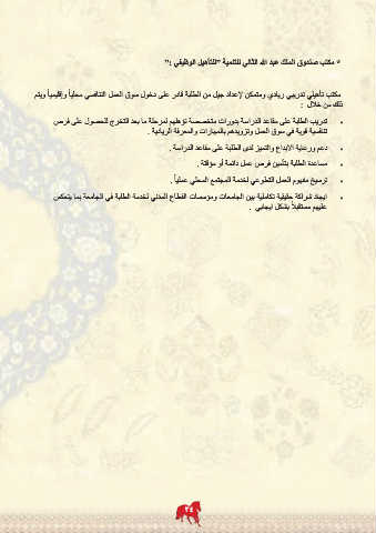 •تدريب الطلبة على مقاعد الدراسة بدورات متخصصة تؤهلهم لمرحلة ما بعد التخرج للحصول على فرص