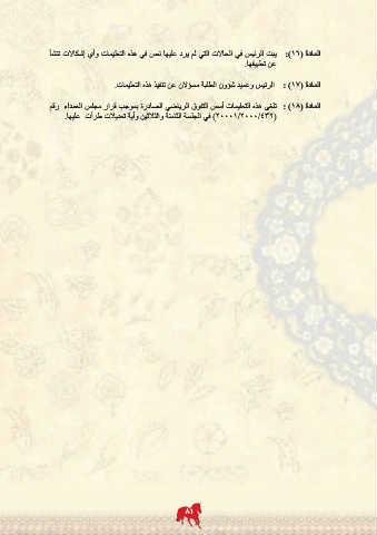 المادة ( :)16يبت الرئيس في الحالات التي لم يرد عليها نص في هذه التعليمات وأي إشكالات تنشأ